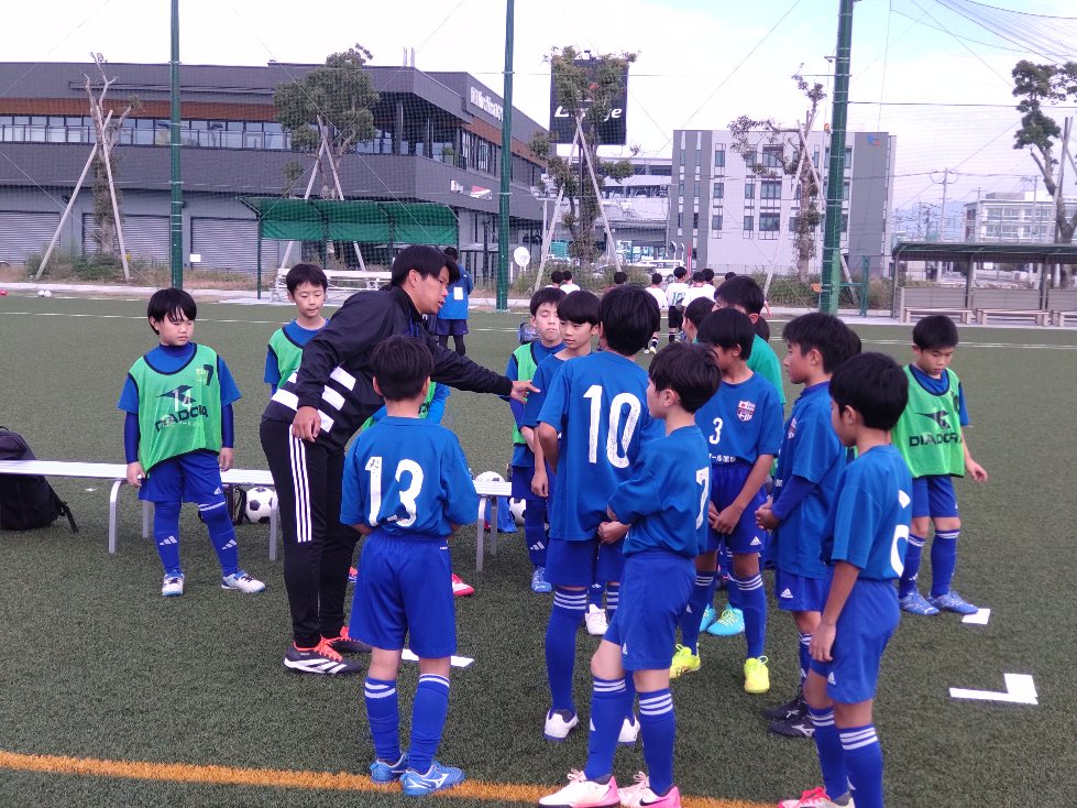 広域公園第一球技場の綺麗な芝生会場での大会に安芸区代表として参加しました。