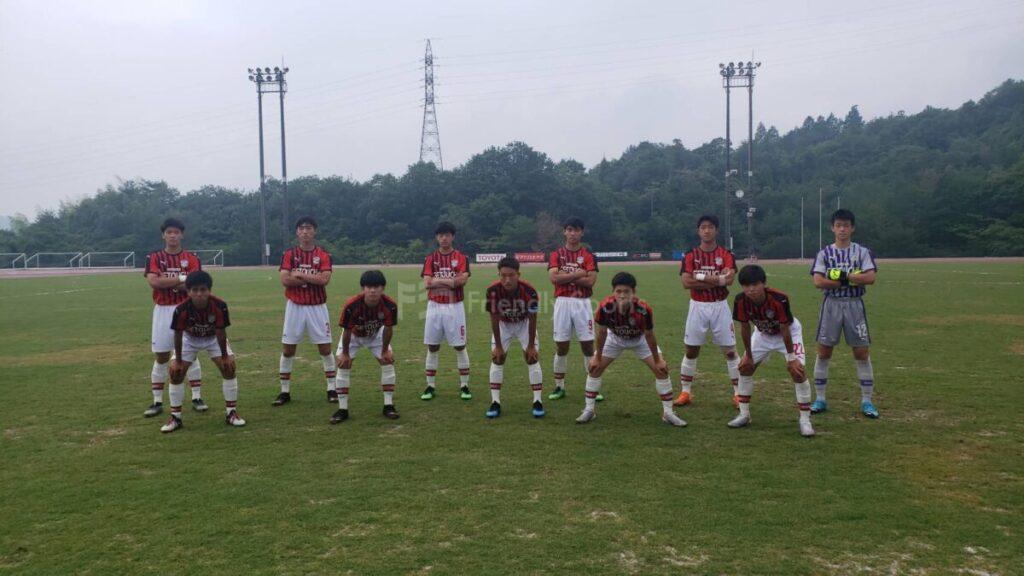 運動量活かし前線からプレスをかける瀬戸内は、皆見陣内のパスを10番がカットしゴール前の9番へパス。9番のドリブル突破はカットされるがこぼれ球に14番がエリア外から素晴らしいミドルシュートを決め先制点を決める。