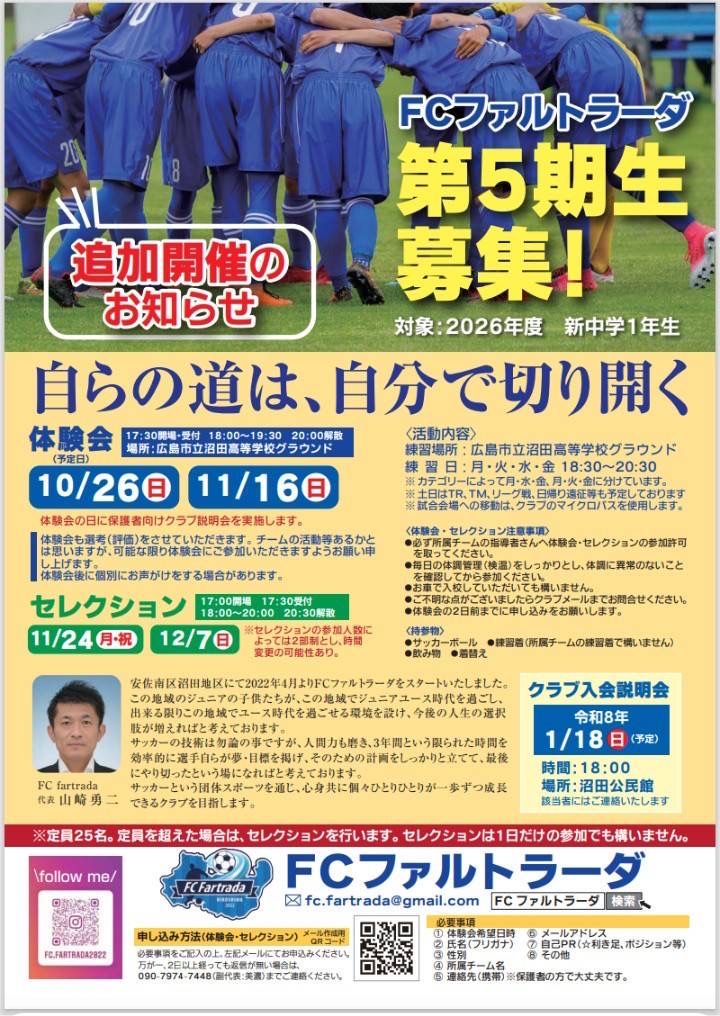 FCファルトラーダ 第5期生募集!(追加開催のお知らせ)