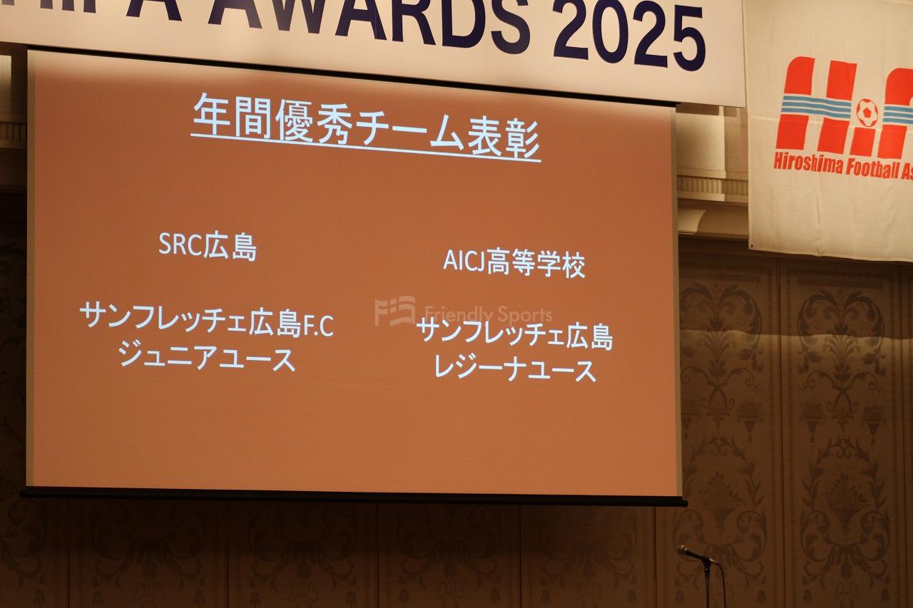 2025年2月5日 HiFA AWARDS2025が開催される 2025年2月1日、HiFA AWARDS2025がリーガロイヤルホテルで開催されました。 (公財)広島県サッカー協会の主催で、年間を通して優秀なチーム、個人、またこれまで広島県サッカーに功績を残した人たちが表彰されました。 表彰された皆さんは笑顔で壇上に上がり、これまでの成果が認められた瞬間でした。 表彰されたみなさま、おめでとうございます。 前の投稿 次の投稿